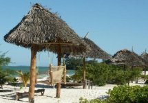 La struttura. Formato da 21 lodge e da un makuti centrale che ospita ristorante e zona bar-soggiorno, il resort è costruito direttamente sulla sabbia, impalpabile e bianchissima, di un’oasi tropicale che si affaccia sulla lunghissima spiaggia situata tra i villaggi di Paje e Jambiani. Ogni lodge ha due stanze e ciascuna di esse è costituita da un’ampia e vivibile camera con alto letto zanzibarino e zanzariera, ventilatore a pale, uno stanzino-guardaroba e un bagno piuttosto ampio, cassaforte (non è presente il frigobar, ma non serve, il clima è sempre ventilato, almeno in questa stagione). Lo stile è sicuramente rigoroso, ma piacevole e i locali sono sempre pulitissimi. Non ho mai visto animaletti, zanzare, mosche o altri insetti. E durante la cena, il personale prepara la stanza chiudendo la zanzariera e impregnandola di antisetticida. Ciascun bungalow ha una magnifica veranda, dalla quale si intravede l’oceano e nella quale si può oziare dondolandosi su di un’amaca/altalena o su un comodo divano, arricchito da cuscini ricoperti da coloratissimi tessuti africani. Tutti gli elementi di arredo sono in legno e materiali naturali e si fondono perfettamente con l’ambiente circostante. Il resort è poi completato da una piscina e da un salotto-palafitta in cui vengono organizzate cene romantiche o in cui ci si può rifugiare a leggere , godendo di una frescura straordinaria. E’ presente anche un negozio di tessuti (“Magò”), con sarto disponibile a confezionare qualsiasi cosa entro 24 ore.